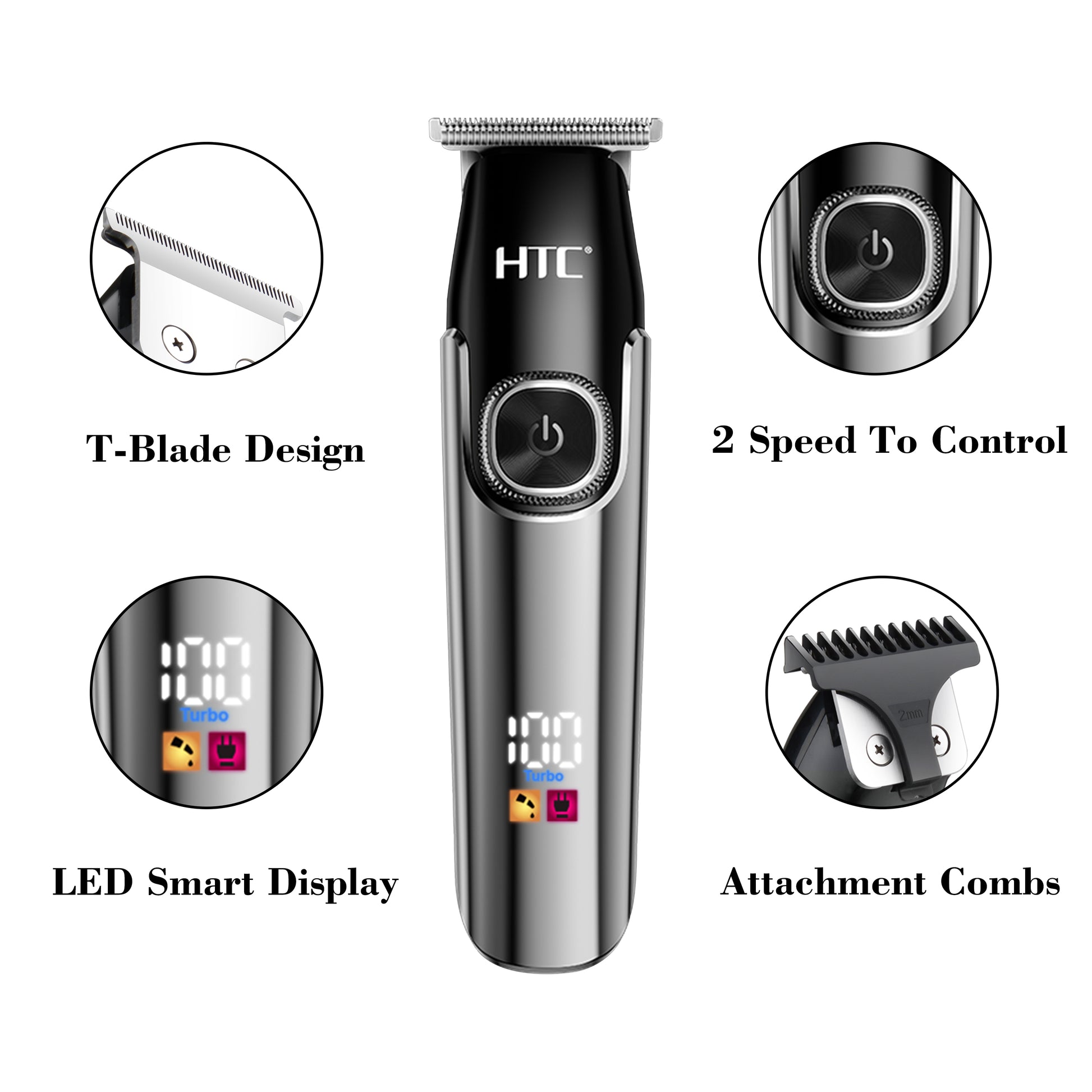 HTC Hair Clipper, Beard Trimmer with 2 Speed Settings, USB Rechargeable Cordless T-Shape Shaver with LED Display and 3 Combs, AT588 (BLACK)